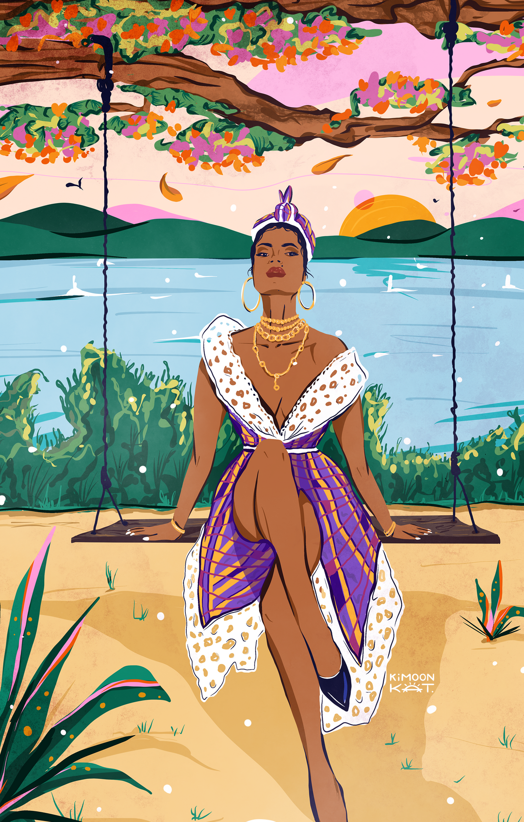 Plus connue sur nom de KimoonKat, moi c'est Katleen et je suis directrice artistique et illustratrice martiniquaise. Je crée des illustrations inspirées de la vie insulaire, des Femmes, de la beauté noire, ou de mon mood du moment ! N'hésites pas à me suivre sur Instagram ! :)